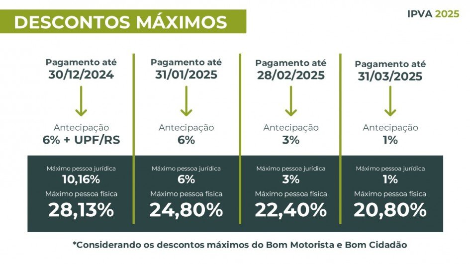Por Clara Tesche Os proprietários de veículos têm até o dia 28 de fevereiro para quitar o IPVA 2025 com desconto máximo de 22,40%. O benefício é concedido para quem fizer o pagamento em cota única, aproveitando 3% de abatimento pela antecipação, além dos descontos do programa Bom Motorista e Bom Cidadão. Os motoristas sem infrações nos últimos três anos podem obter até 15% de desconto, enquanto quem participa da Nota Fiscal Gaúcha pode conseguir até 5% de abatimento, conforme a quantidade de notas fiscais cadastradas. Além disso, aqueles que optaram pelo parcelamento do tributo em janeiro devem quitar a segunda parcela até o fim do mês. Os contribuintes podem realizar o pagamento por Pix, gerando o QR Code, ou utilizando a rede credenciada via aplicativos bancários. Para acessar os serviços digitais do IPVA RS, é necessário login pelo gov.br, garantindo mais segurança nas operações. O governo alerta os motoristas para que fiquem atentos a golpes e sempre verifiquem as informações do destinatário antes de efetuar o pagamento.