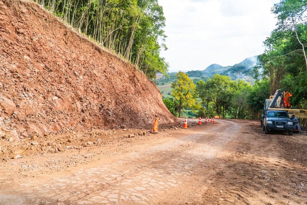 Desde o ano passado, o trecho asfaltado cresceu de 7,7 km para 12 km. Máquinas trabalham perto da cidade, e há um desvio recomendado pelo Perau Velho.