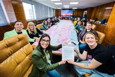 Cerca de 20 ativistas do movimento LGBT+ entregaram, nesta terça-feira (9), uma carta à primeira-dama Valéria Leopoldino, solicitando a sanção do projeto que cria cotas de 1% para pessoas transexuais em concursos públicos e vagas de estágio na Capital. A proposta da vereadora Natasha Ferreira (PT) foi aprovada na Câmara e agora depende da decisão do prefeito Sebastião Melo, que tem até 17 de setembro para sancionar ou silenciar sobre a matéria.