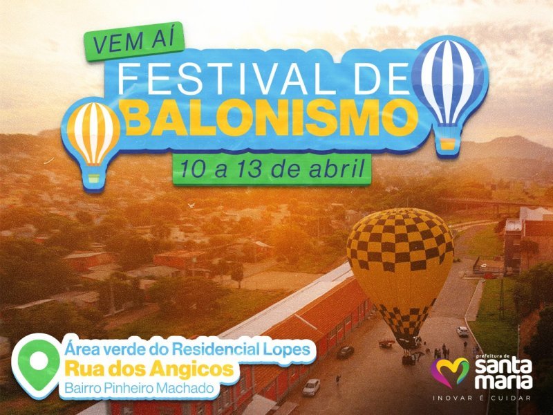 Santa Maria se prepara para receber um dos eventos mais esperados do ano: o Festival de Balonismo 2025, que acontece de 10 a 13 de abril na área verde do Residencial Lopes, no Bairro Pinheiro Machado. A expectativa é atrair mais de 50 mil pessoas durante os quatro dias de atrações para todas as idades.