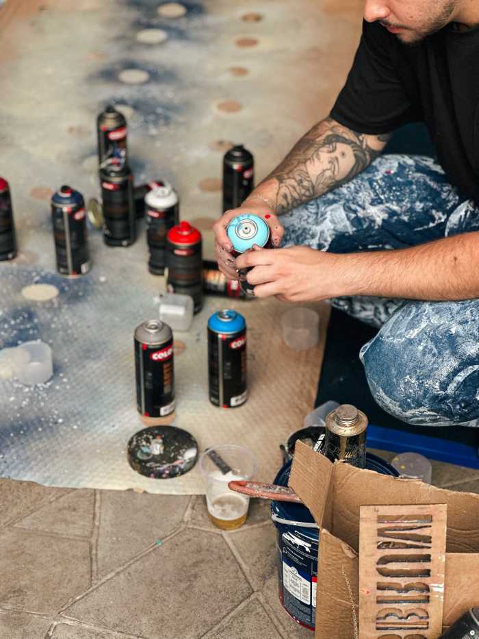 Com quase cinco anos dedicados ao spray, Léo trabalha com uma naturalidade que chama atenção de quem o observa. A agilidade das mãos, o foco e a calma que transmite enquanto pinta parecem parte do próprio processo — tanto que, muitas vezes, ele sequer coloca música. “Fico tão vidrado que me desconecto de tudo”, conta.
